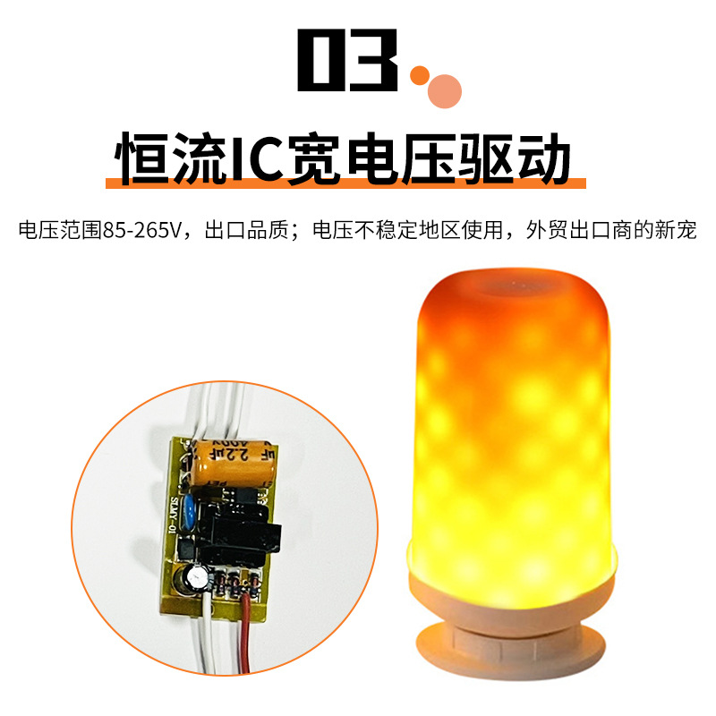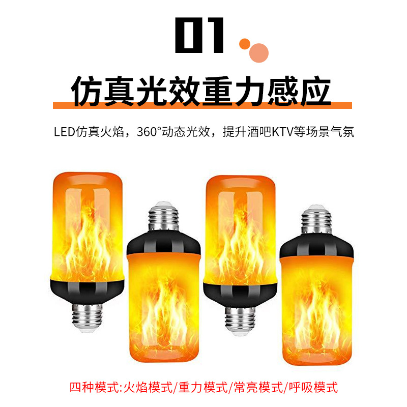功率 | 51LED白底火焰灯 | 色温 | E27 三挡带重力感应 黄光 |