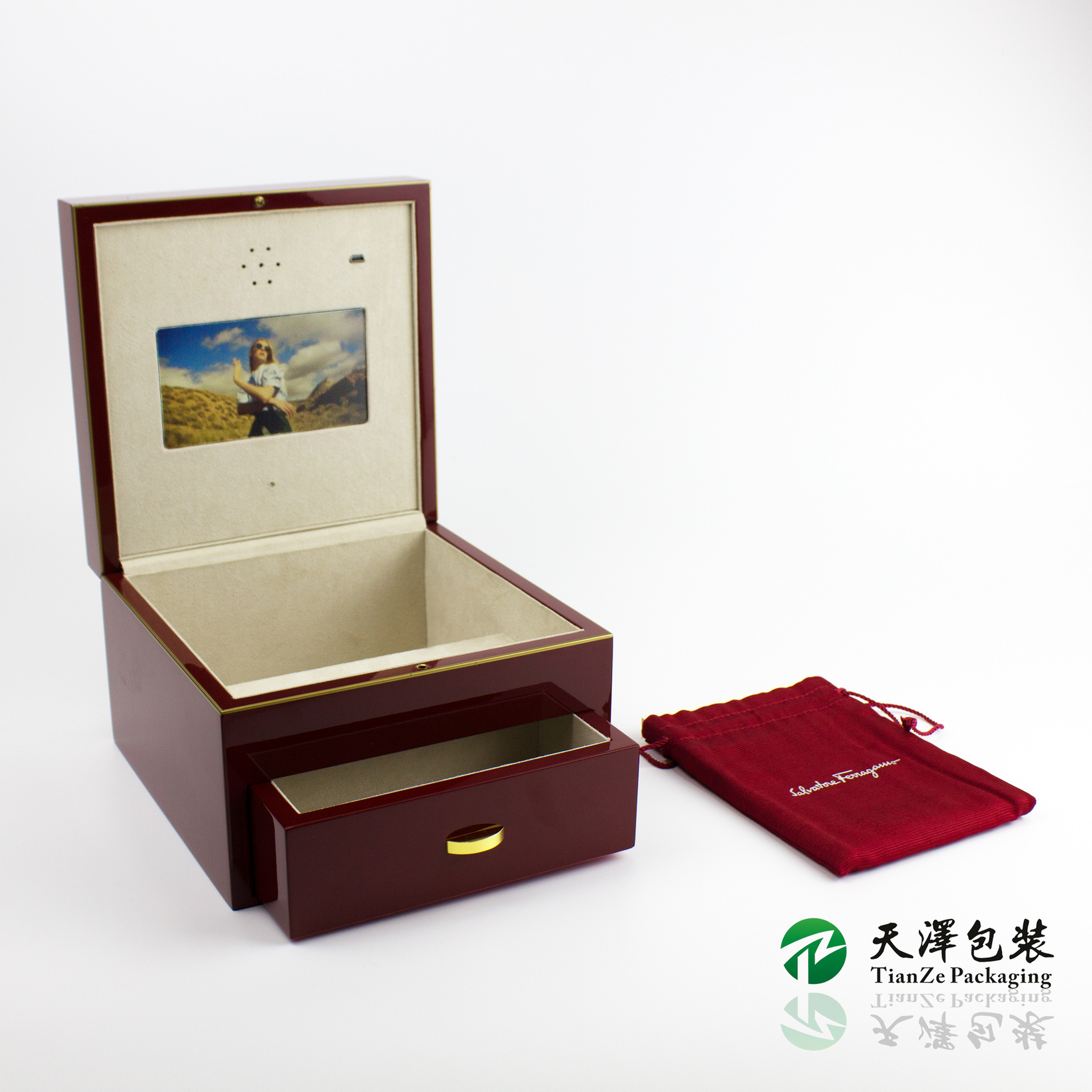 创意LED木盒定制红色钢琴烤漆木盒定翻盖礼品包装盒带音响播放