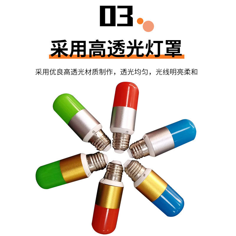 LED擎天柱彩泡5W红光绿光蓝光铝材恒流宽压高亮灯泡工厂直供批发