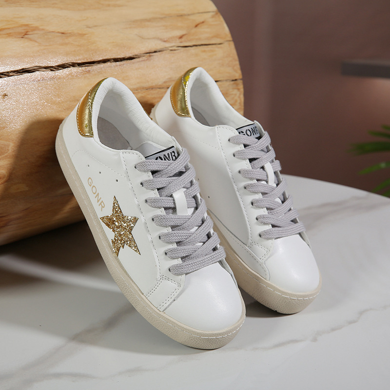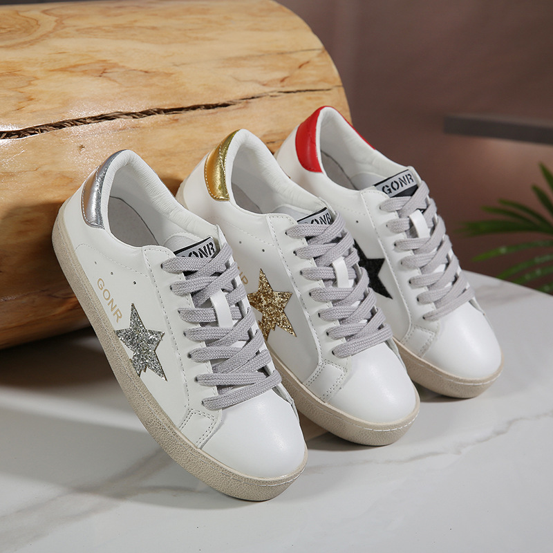 真皮亮片脏脏鞋星星鞋小脏鞋复古板鞋女2024新款春季小白鞋情侣鞋