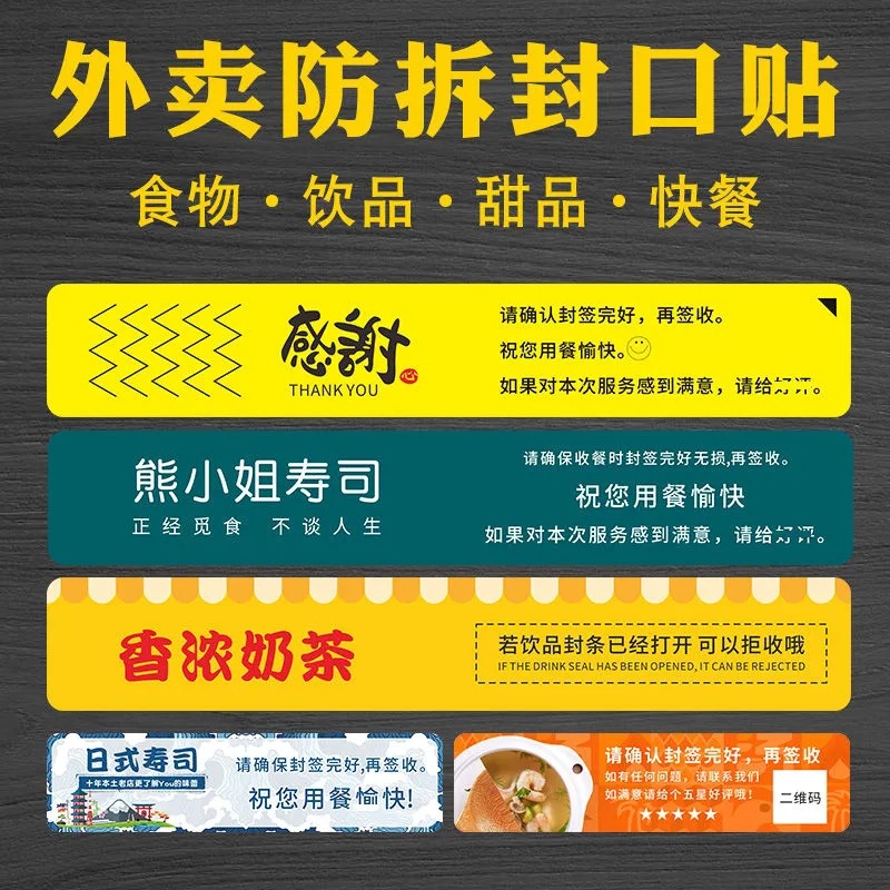 外卖封口贴防撕防拆安心密封安全签标签贴纸定制不干胶感谢贴