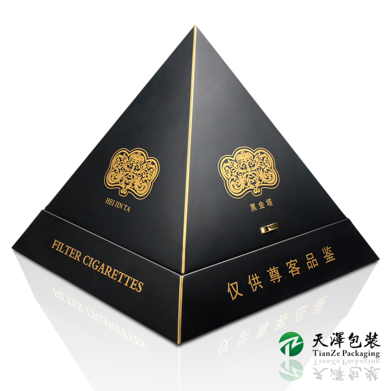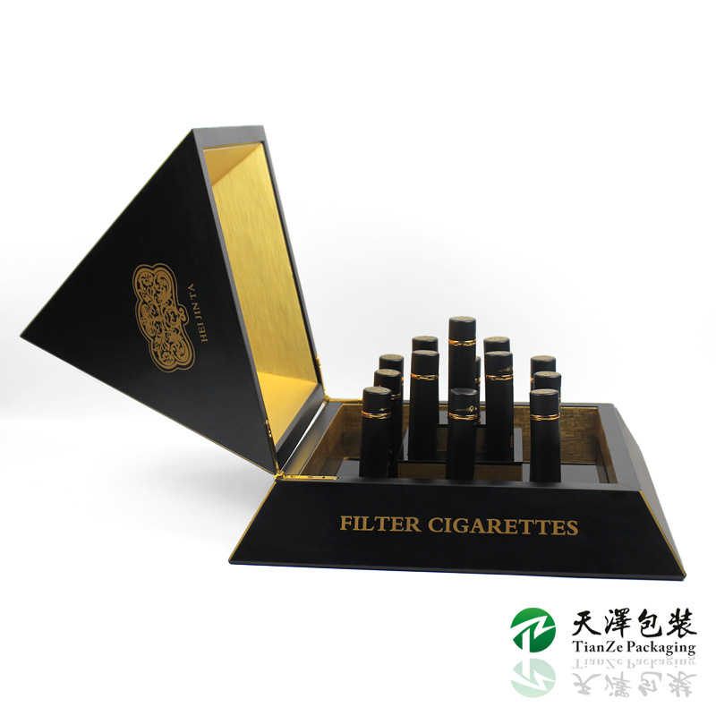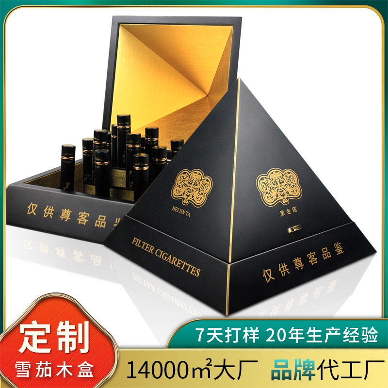 金字塔香烟礼盒实木礼品包装盒黑色商务礼品盒木制