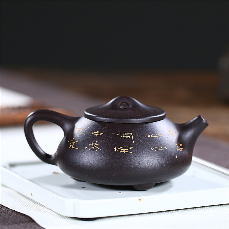 宜兴紫砂壶黑金砂景州石瓢茶壶名家全手工家用茶具网店一件代发
