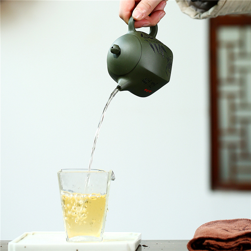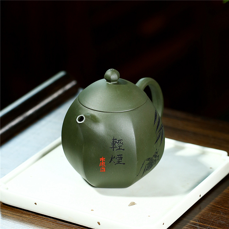 批发宜兴原矿绿泥紫砂壶名家全手工六方龙蛋茶壶厂家货源直供代理