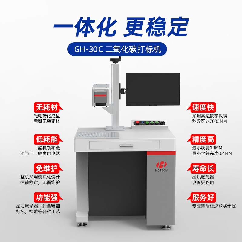 二氧化碳木质贺卡打标机包装纸喷码机铝塑料亚克力皮革雕刻机激光
