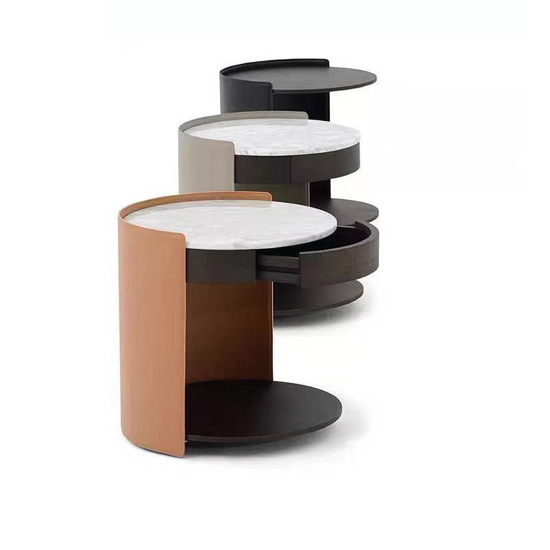 意式极简床头柜北欧ins圆现代卧室设计师免安装圆边几移动床头柜