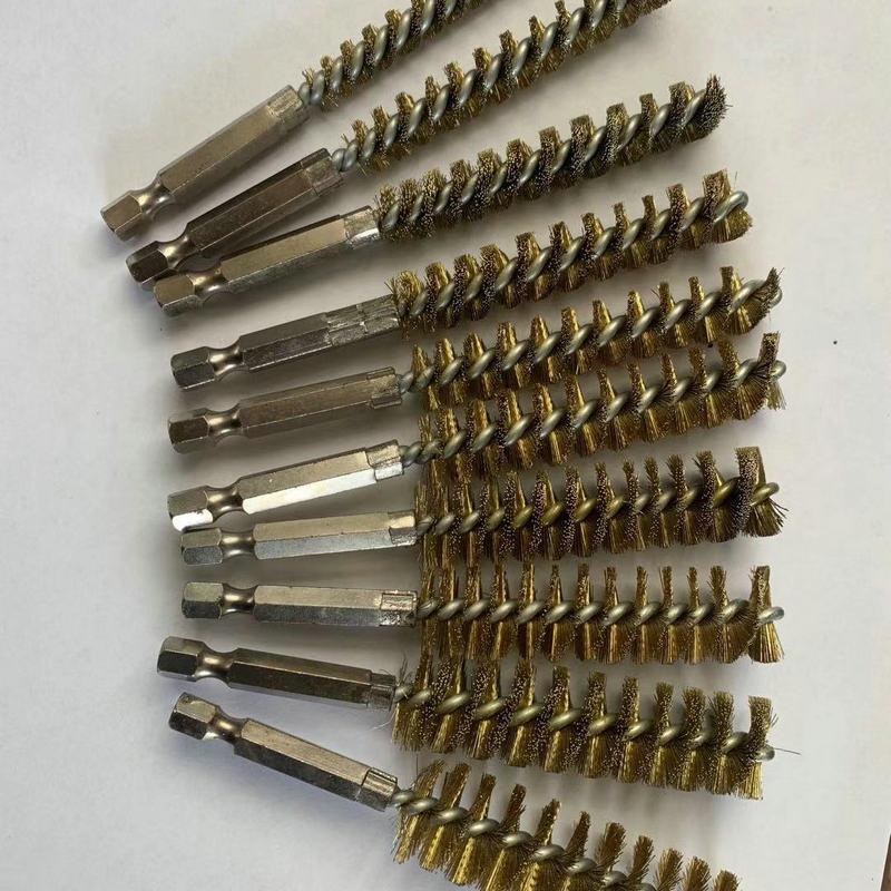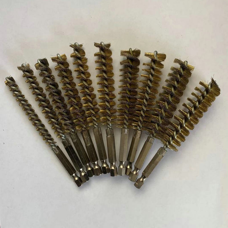 不锈钢丝铜丝六角杆管道清洗刷10件枪刷套装五金抛光去毛刺工具刷