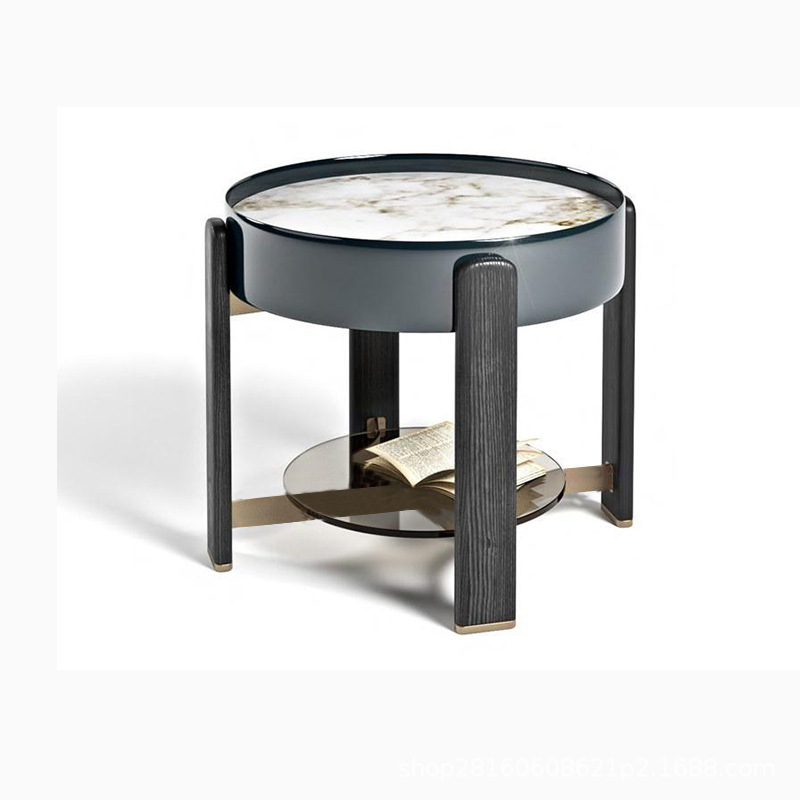 茶几小户型现代轻奢圆形组合岩板设计师意式极简创意边几岩板台面