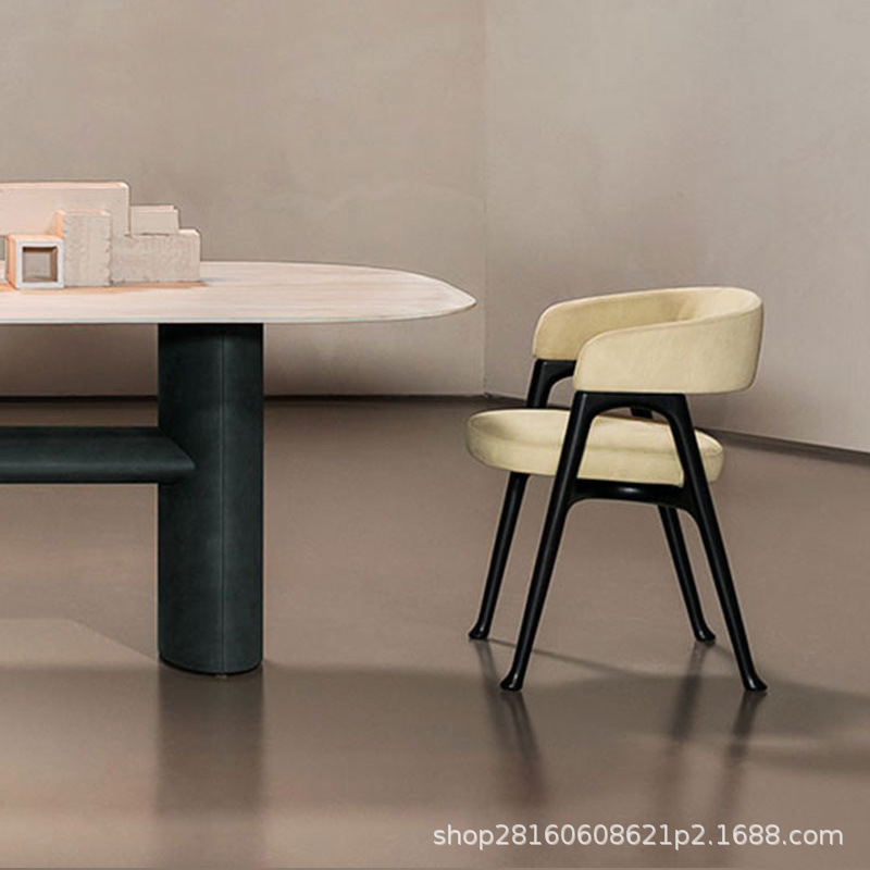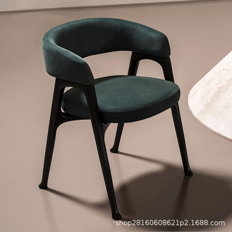 轻奢实木餐椅现代简约家用磨砂皮休闲靠背椅意式极简胡桃色白蜡木