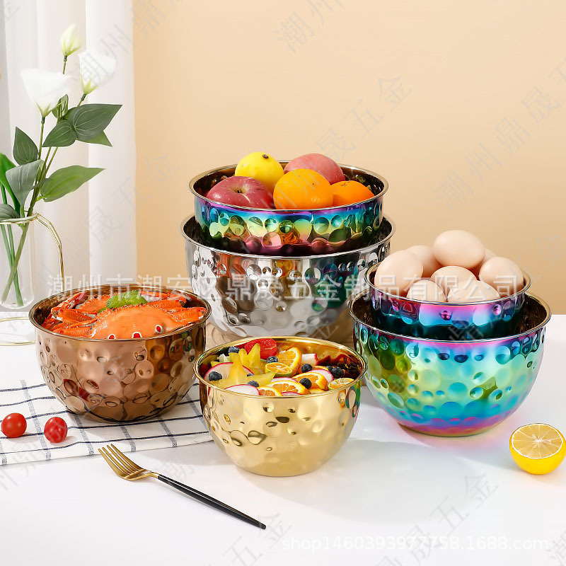 不锈钢锤纹沙拉碗 打蛋盆料理盆沙拉盆烘培搅拌色拉碗 可支持跨境