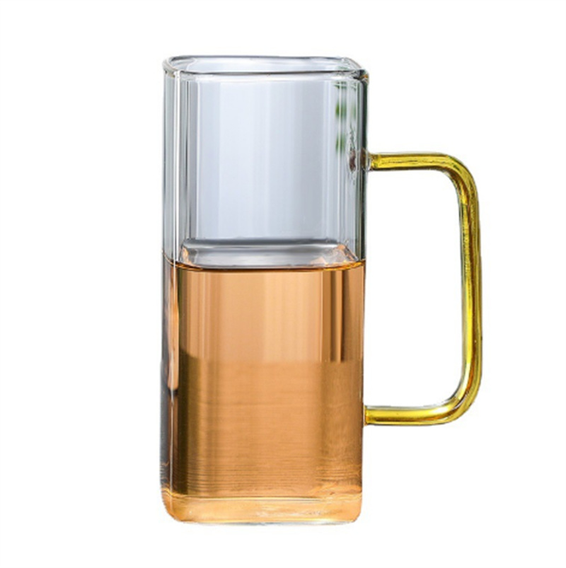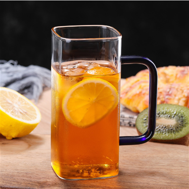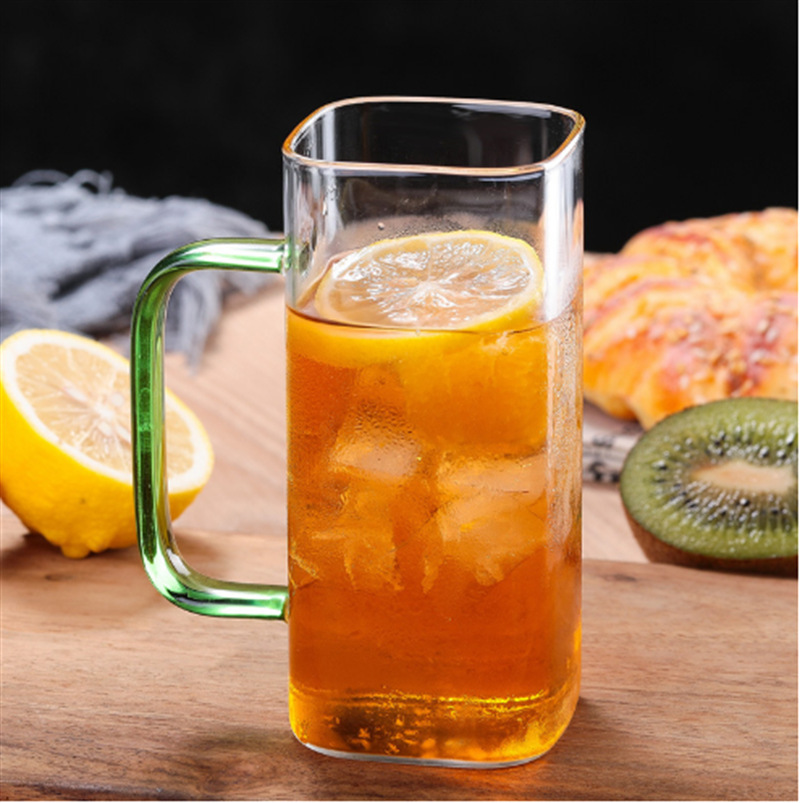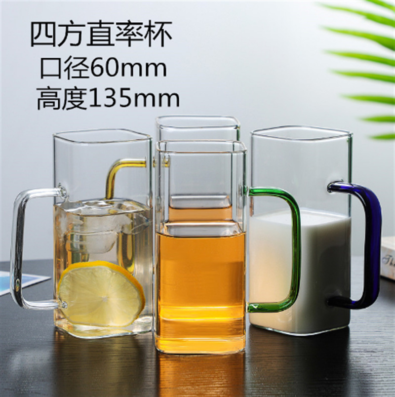 高硼硅方形奶茶杯玻璃杯彩色手把透明水杯早餐杯果饮直身杯子