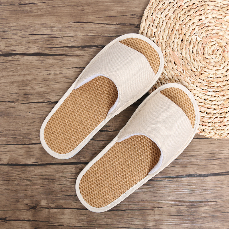 现货夏季2024款酒店宾馆民宿一次性成人室内草席EVA静音麻布拖鞋
