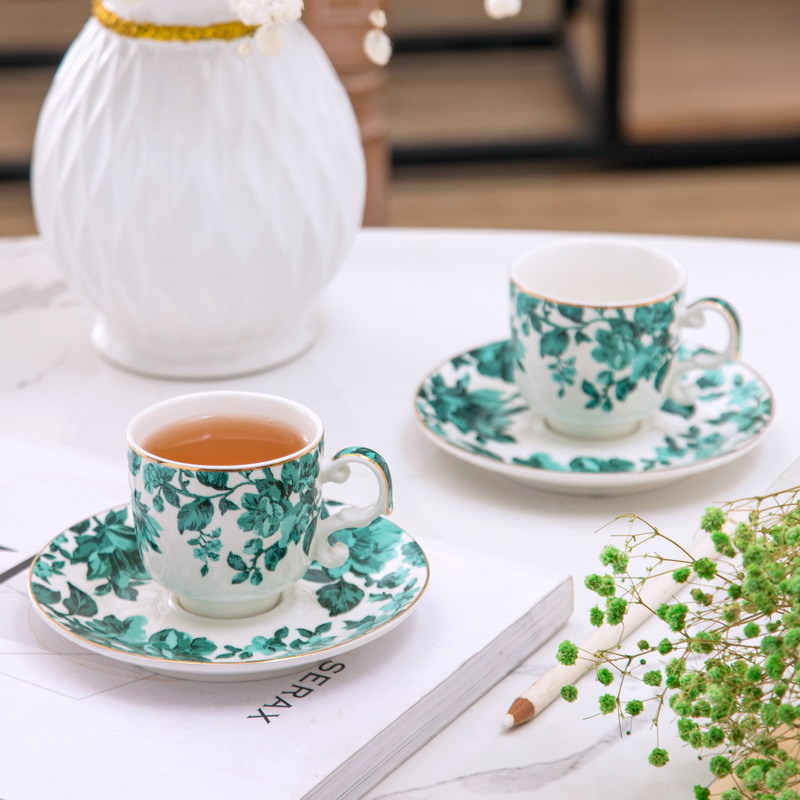 意大利轻奢咖啡杯碟六件套意式浓缩咖啡小号陶瓷杯下午茶花茶杯