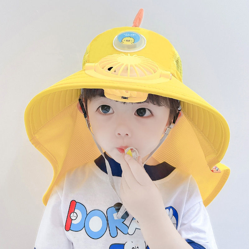 儿童帽子防紫外线宝宝遮阳帽男女童带披肩亮灯风扇帽大帽檐渔夫帽