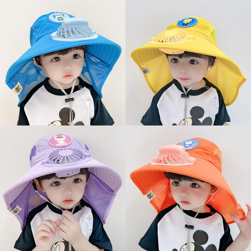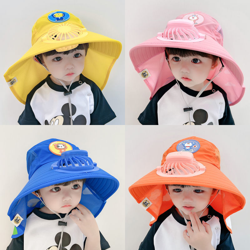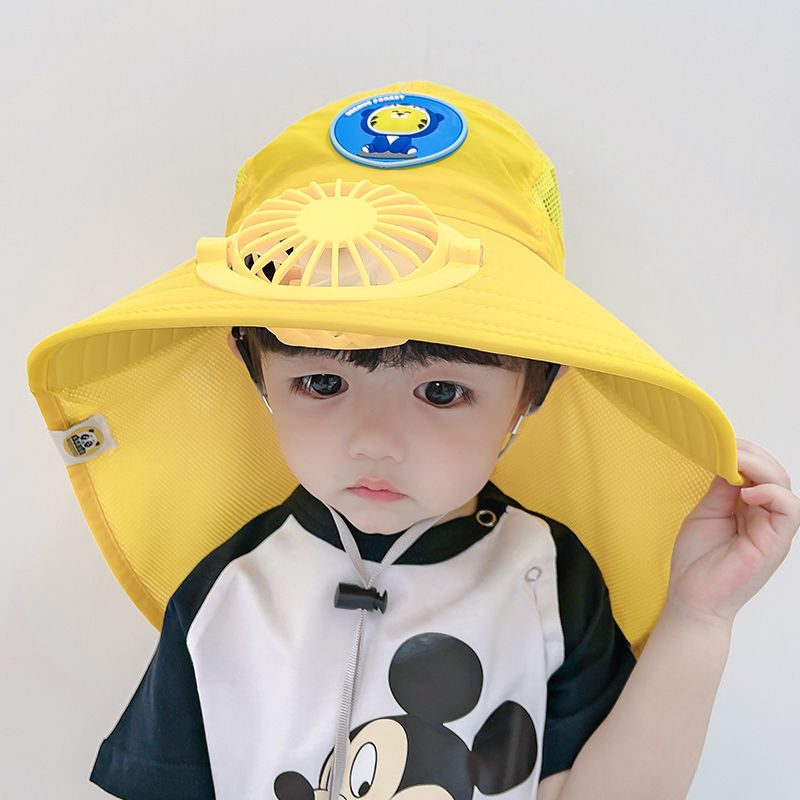 带风扇帽子儿童夏季可爱宝宝遮阳帽沙滩游玩太阳帽子防晒护颈充电