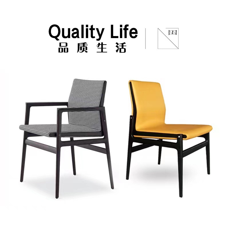 工厂供应现代简约家用休闲靠背椅轻奢餐椅带扶手磨砂皮意式极简