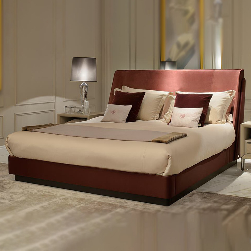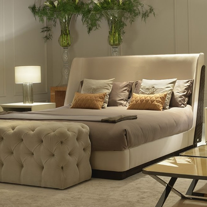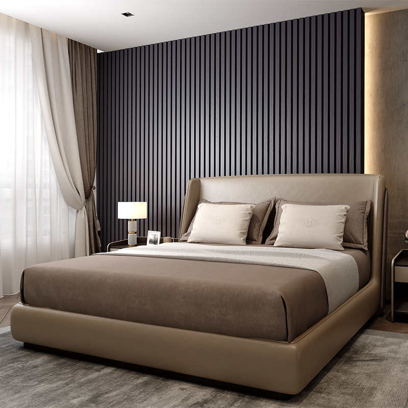 工厂供应意式轻奢风大床双人床现代简约双人家用软底皮革拼接设计
