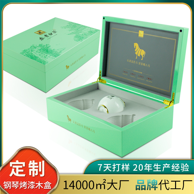 高光烤漆礼品木盒海绵内衬木盒包装绿茶木盒包装高档烤漆礼盒