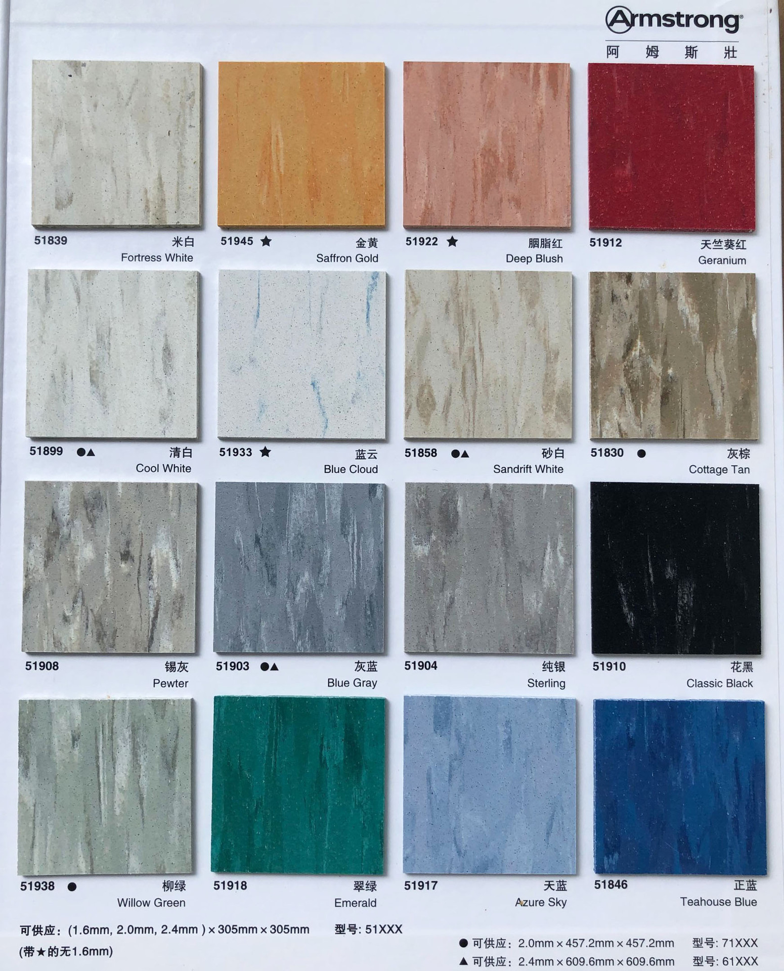 美国阿姆斯壮龙彩同质透芯PVC地板塑胶地板 商用石塑片材超市耐磨