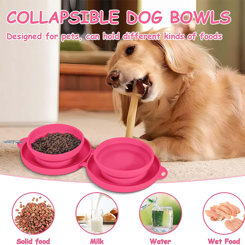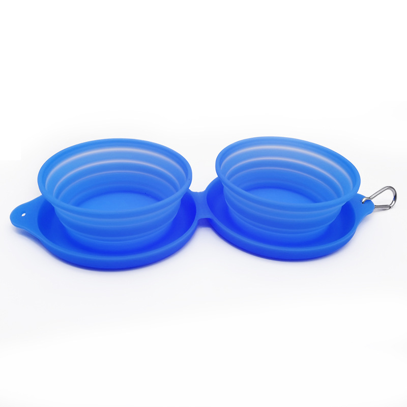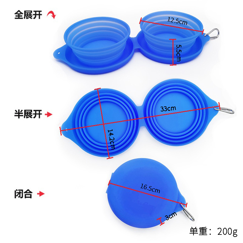 跨境新款户外宠物双碗食具折叠硅胶宠物碗 宠物用品便携狗碗批发
