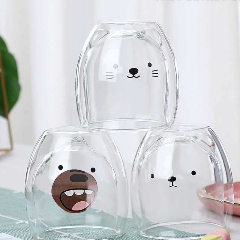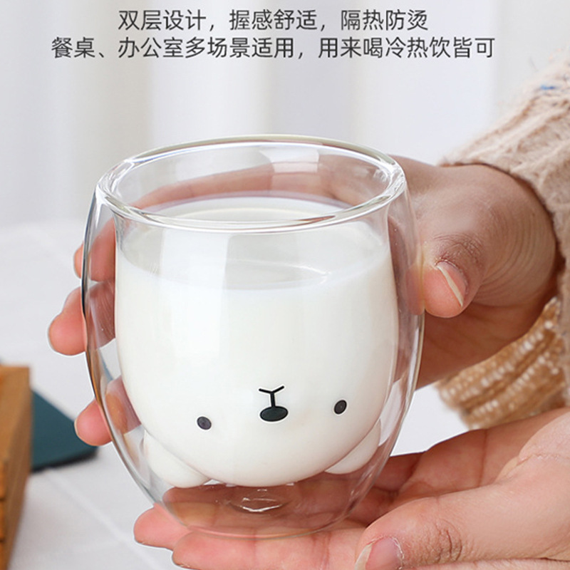小熊双层玻璃杯水杯 小熊杯 高颜值双层玻璃隔热防烫咖啡杯牛奶杯