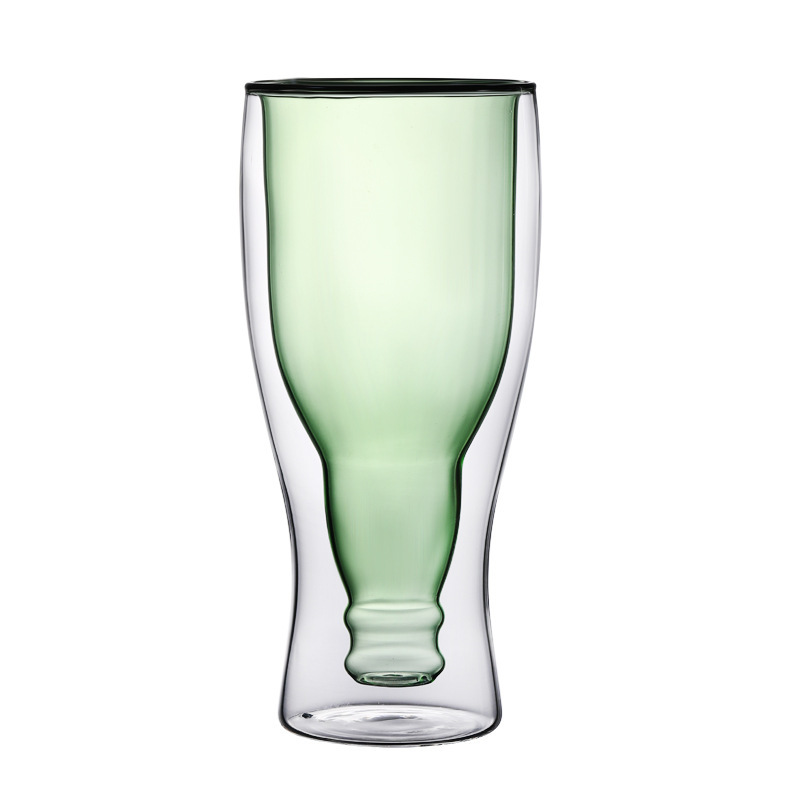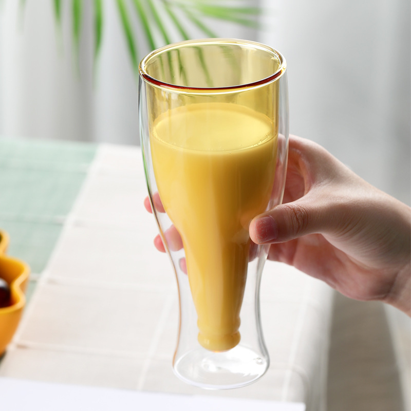 彩色双层倒置啤酒瓶啤酒杯双层玻璃杯真空杯果汁杯高硼硅玻璃杯