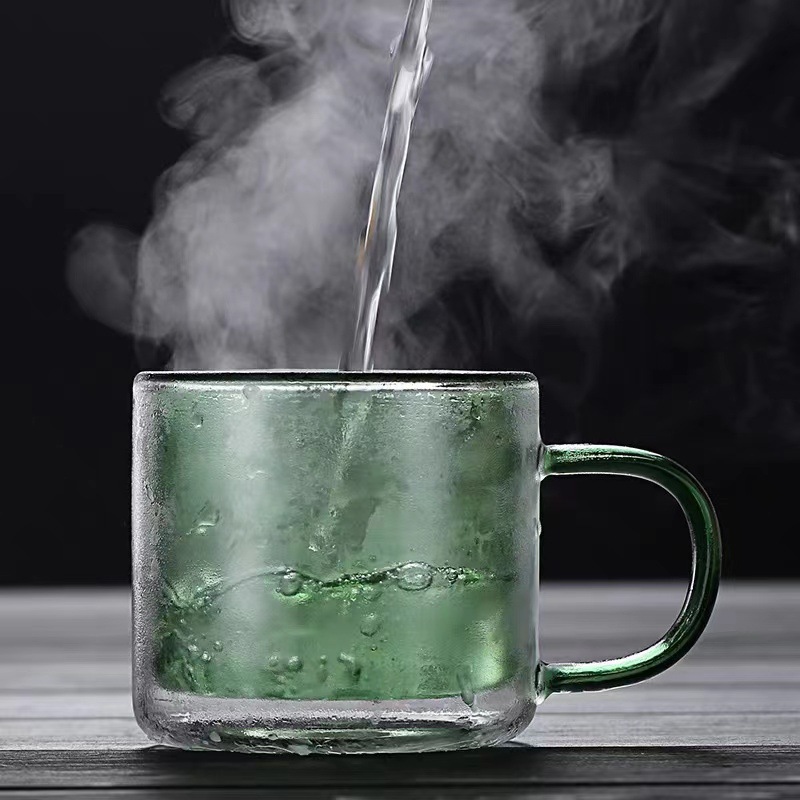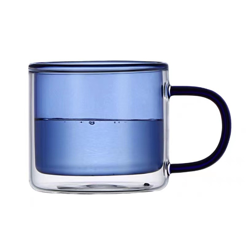 批发彩色双层玻璃水杯彩色透明马克杯带把手咖啡杯喝水杯子茶杯