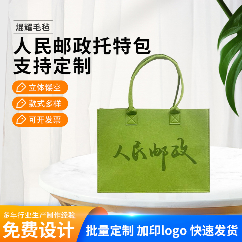 毛毡托特包通勤大容量银行保险礼品袋托特包伴手礼毛毡手提袋定制
