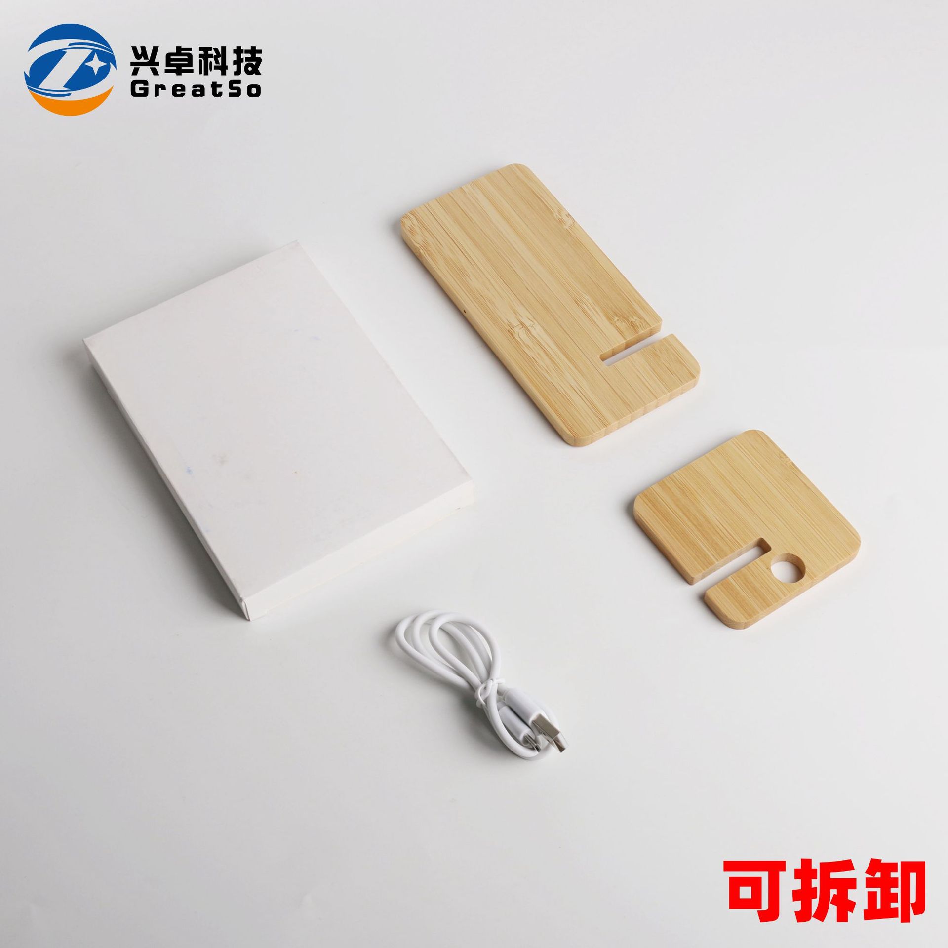 可拆卸竹木无线充手机支架 立式木质竹子无线充电器10W/15W