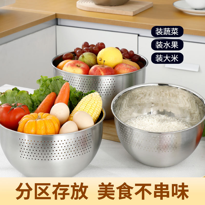 304不锈钢洗米筛淘米器沥水篮洗菜篮子厨房洗米盆筛子过滤网家用