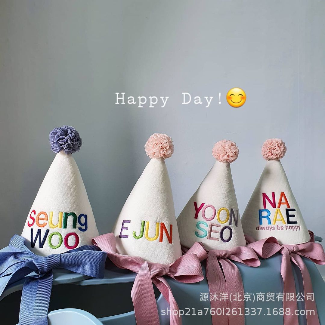 现货韩系ins宝宝生日帽主题派对周岁装饰尖角帽拍照道具当天发货