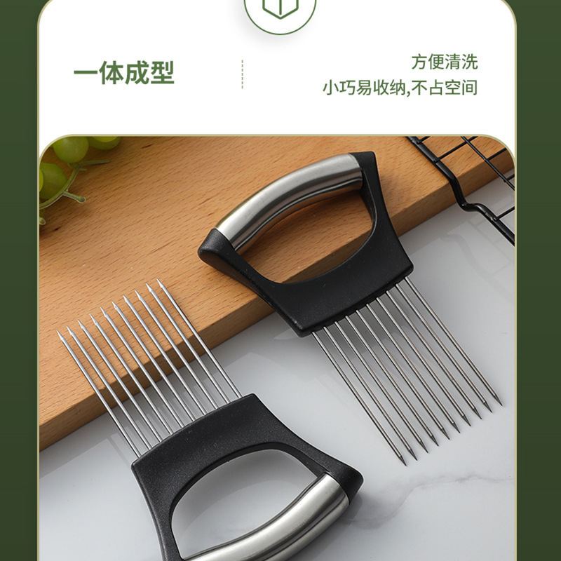 不锈钢多功能插肉针柠檬切片厨房牛排松肉器洋葱叉切菜护手固定器