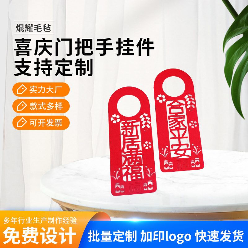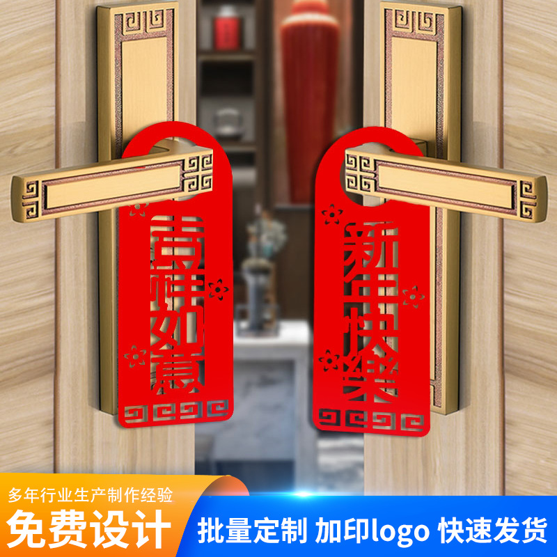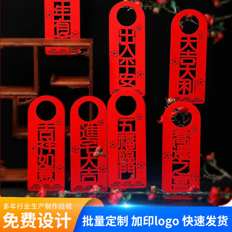 2026过年婚房毛毡门把手挂件客厅门锁吊牌卡片挂件新年快乐门挂