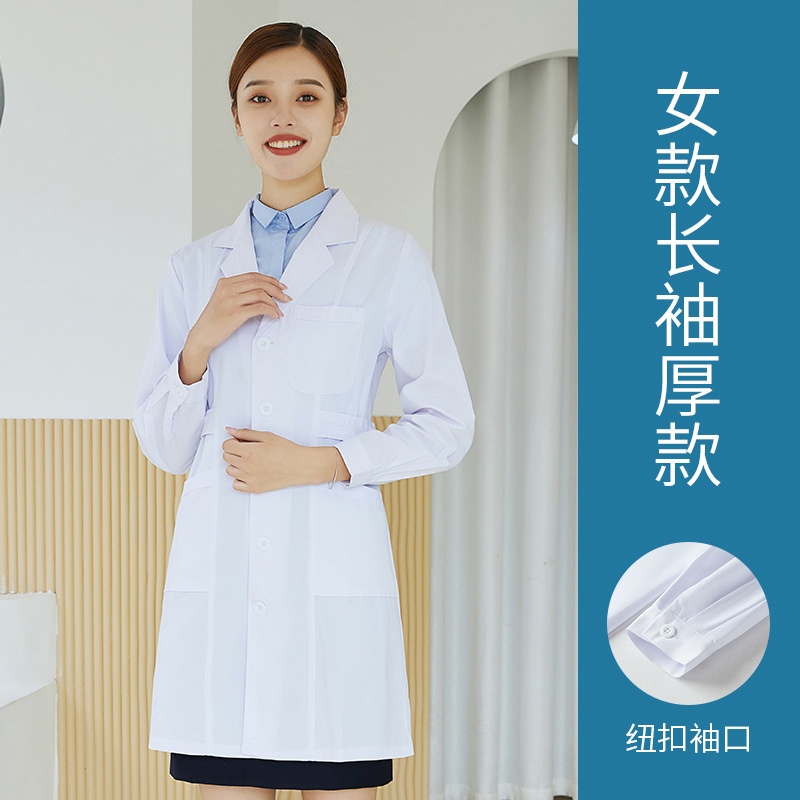 现货长袖 厚款纽扣长款实验室白大褂H15.Y206女 医院厂服刺绣logo