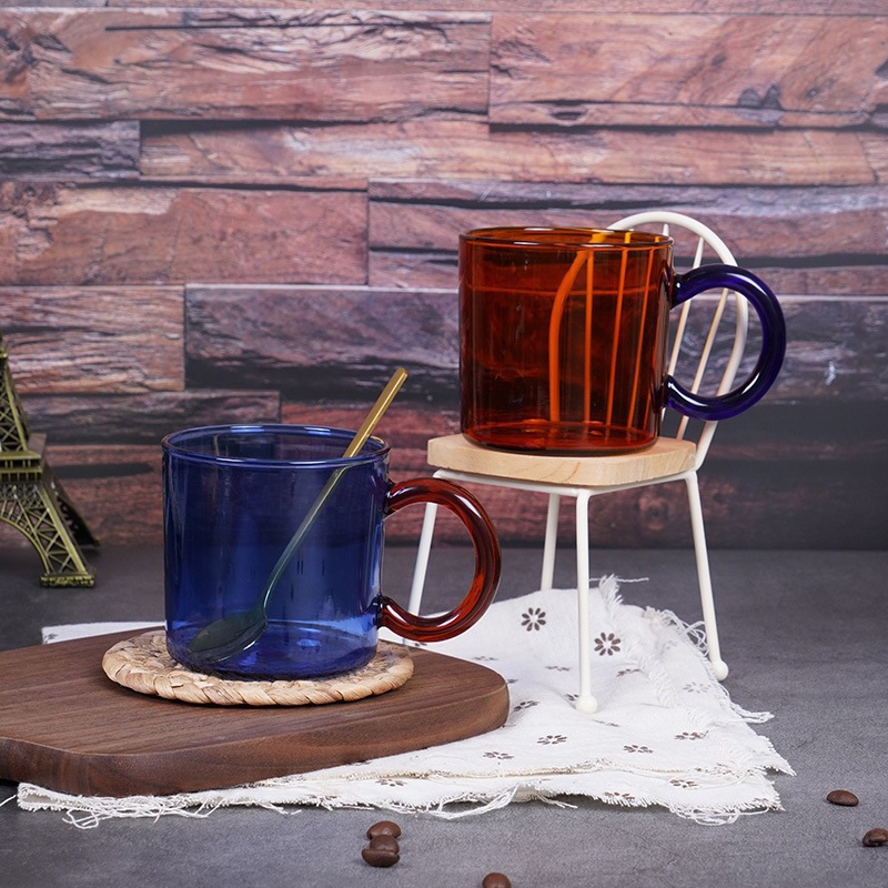 彩色玻璃咖啡杯高硼硅玻璃杯带把网红日式马克杯创意果汁水杯单杯