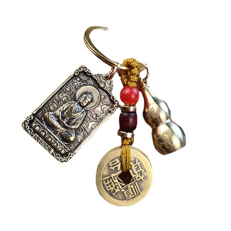 新款十二12生肖本命佛挂件朱砂葫芦方形佛牌八大守护神钥匙扣挂件
