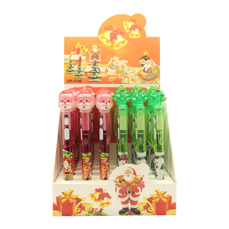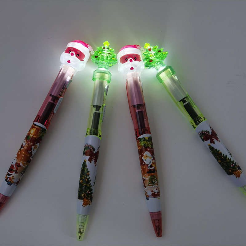 水晶圣诞树圣诞老人中性笔LED灯笔帽趣味diy签字笔文具用笔