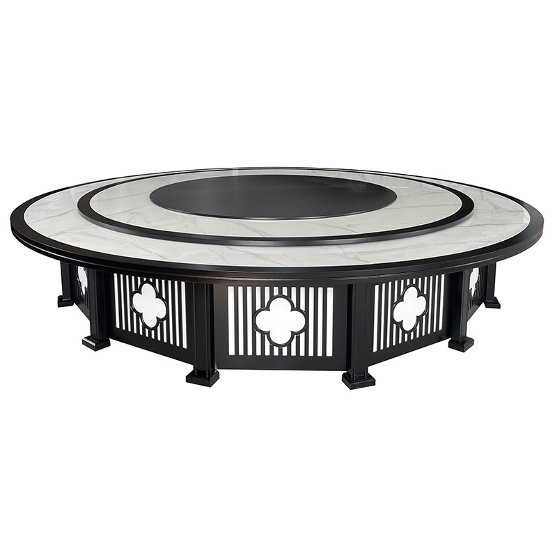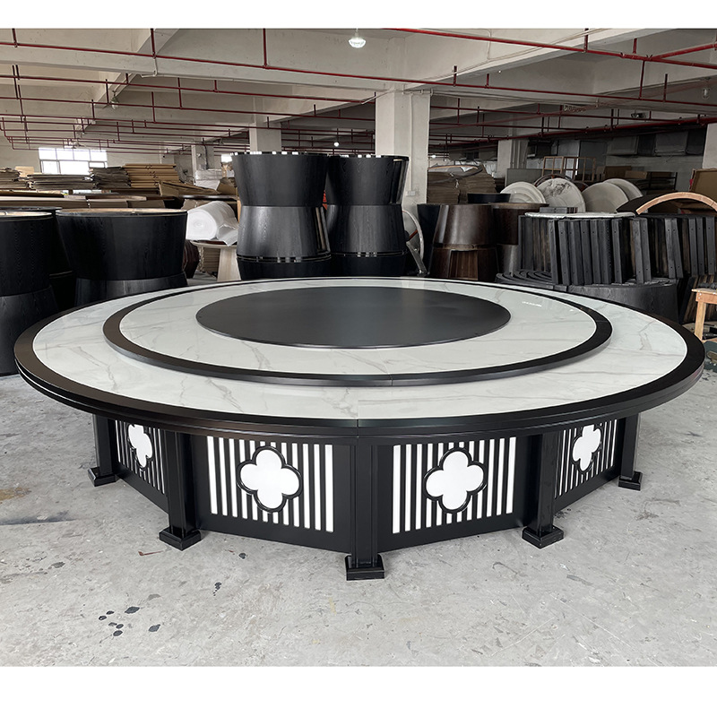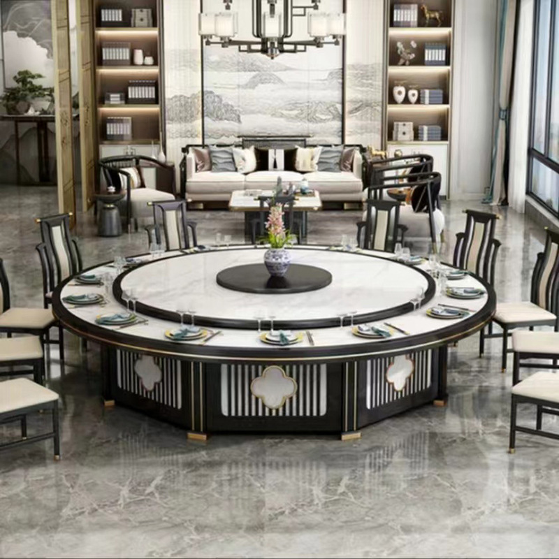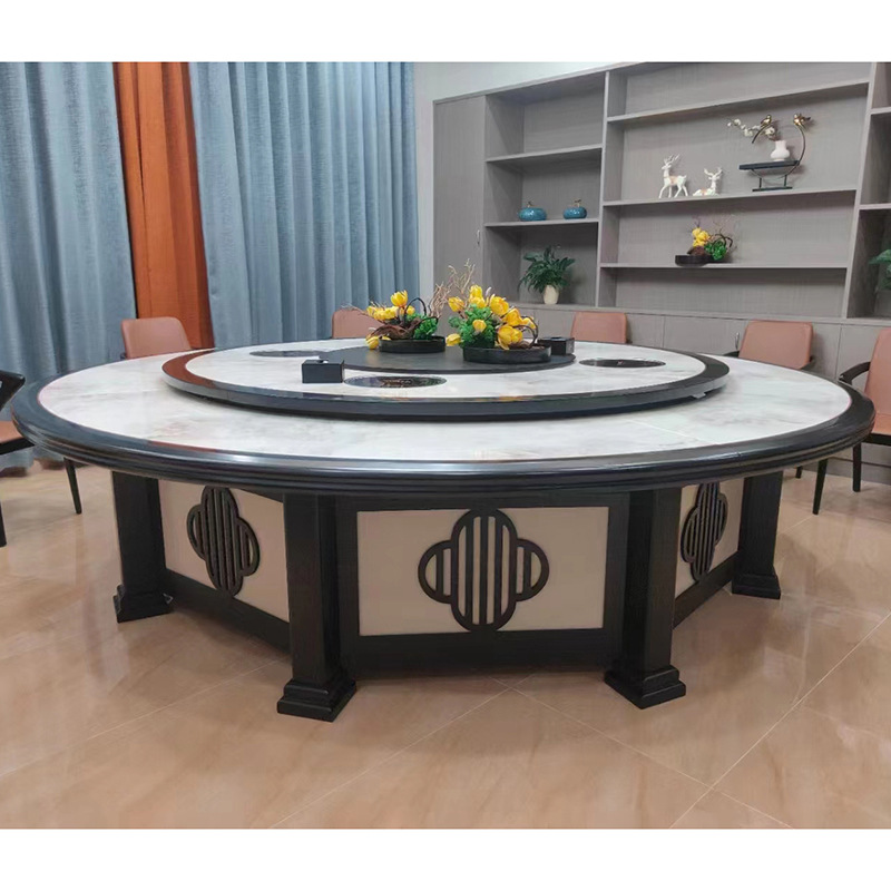 橡木实木内嵌岩板电动桌 中式旋转大桌 专业电动餐桌椅配套工厂