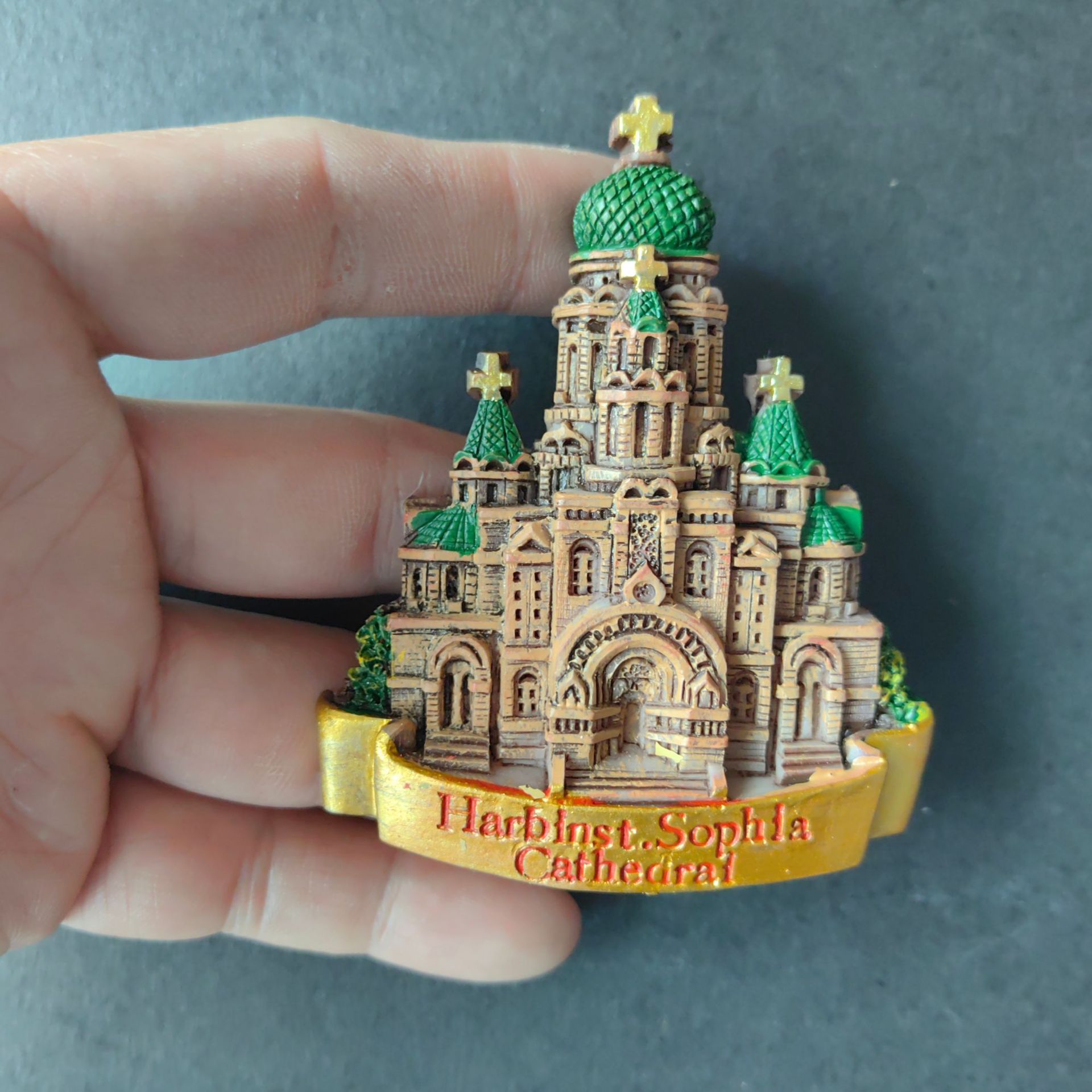 旅游纪念品树脂冰箱贴哈尔滨索菲亚教堂城堡天津安徽装饰磁3d立体