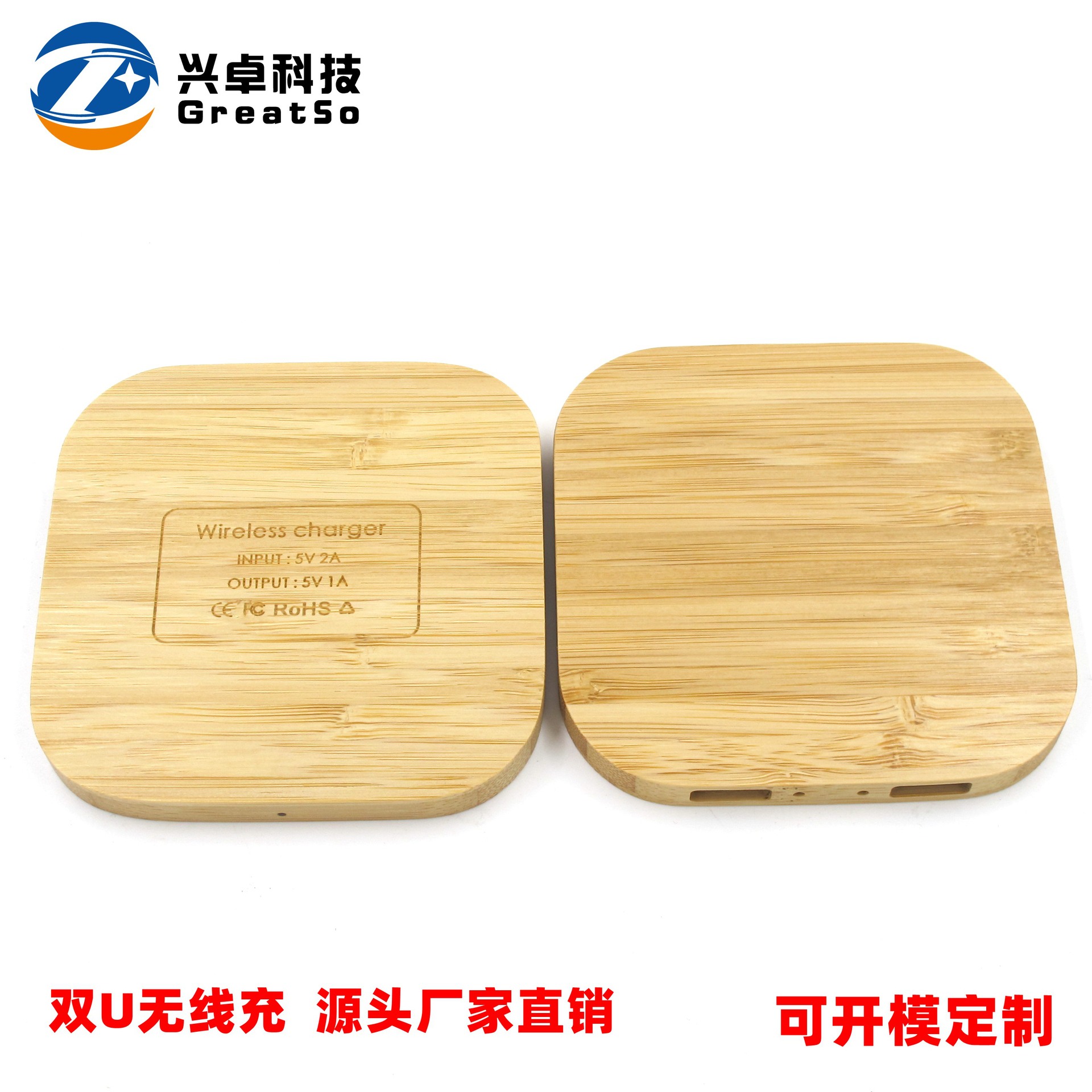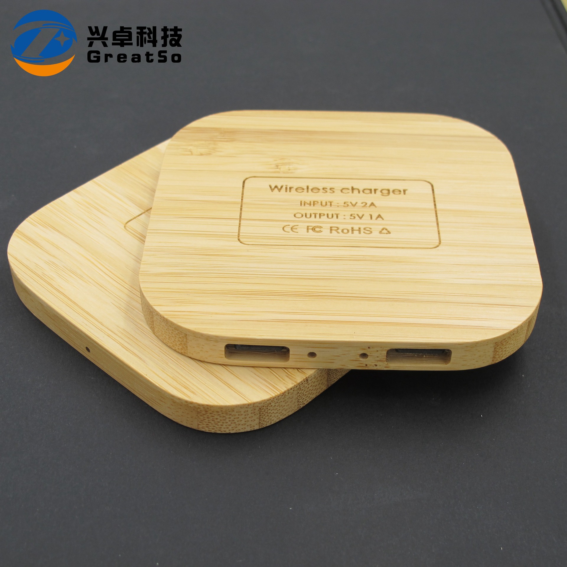 新款创意竹木无线充电器 双USB竹子无线充 源头厂家批发定制