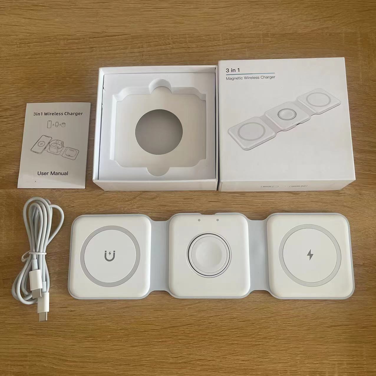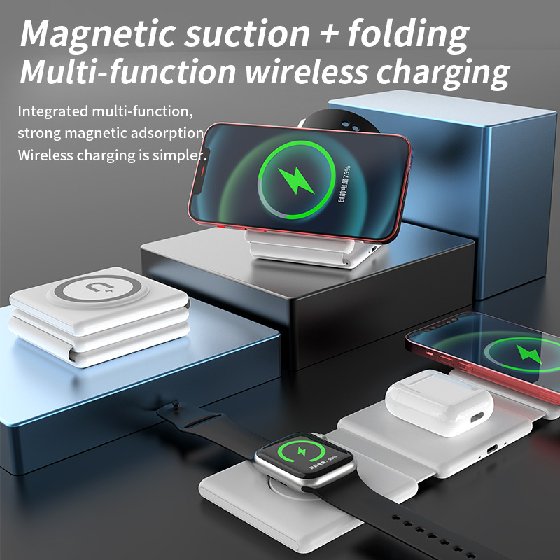 跨境折叠磁吸15W无线充电器 旅行便携式多功能手机三合一无线充