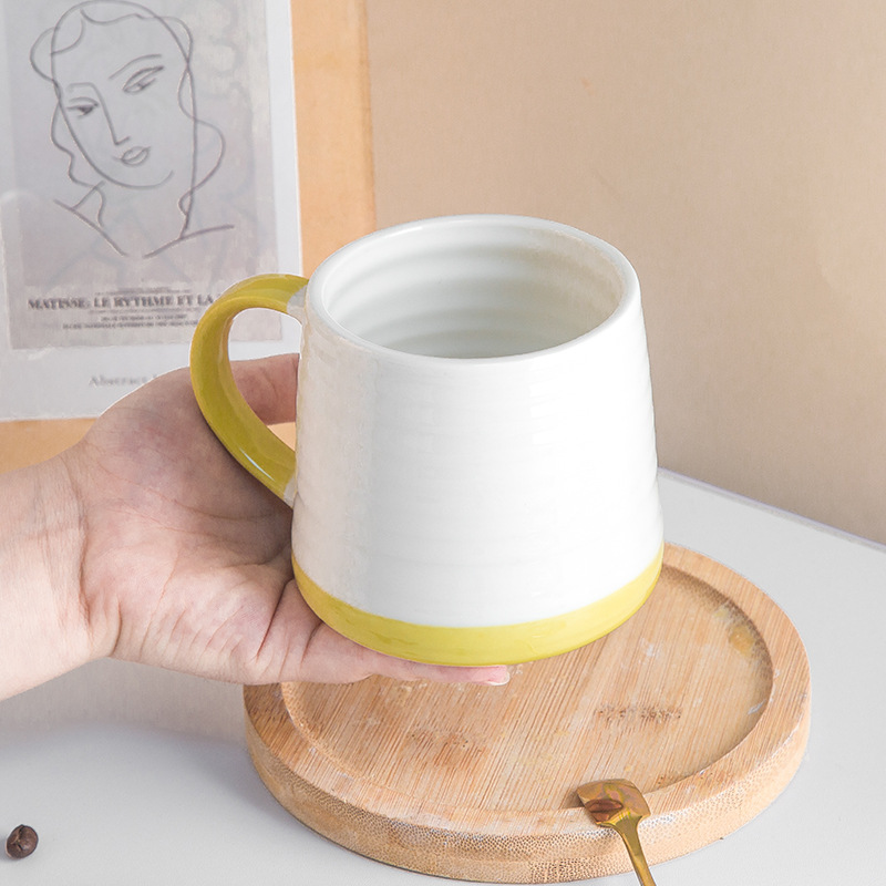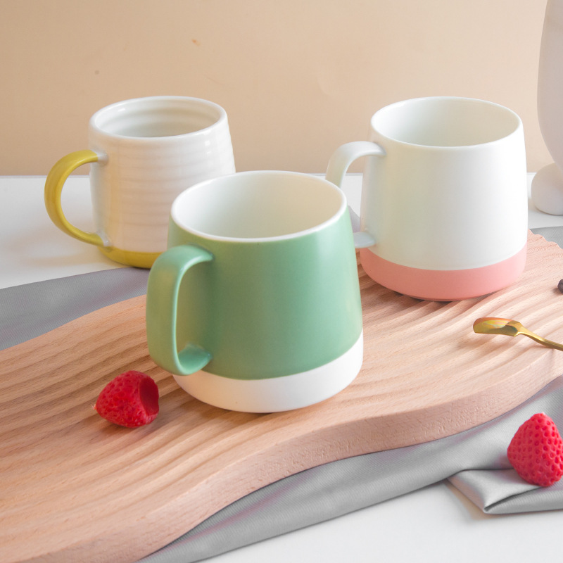 厂家定制北欧风拼色风陶瓷咖啡牛奶杯下午茶创意高颜值马克杯
