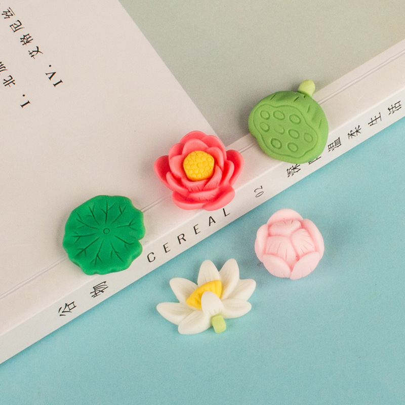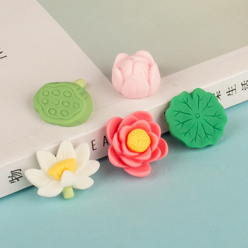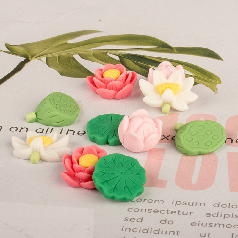 新款荷花系列diy树脂配件奶油胶手机壳挂件钥匙扣发卡耳环手链扣