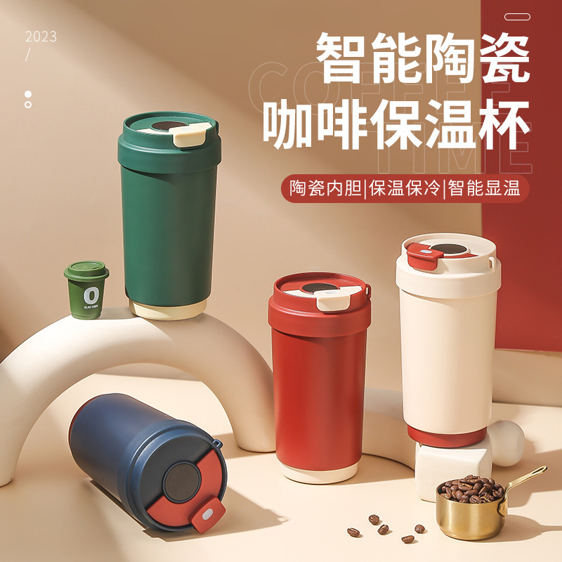 外出咖啡杯显温不锈钢保温陶瓷内胆男女车载户外刻度批发杯子