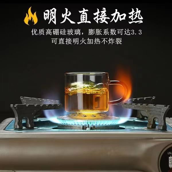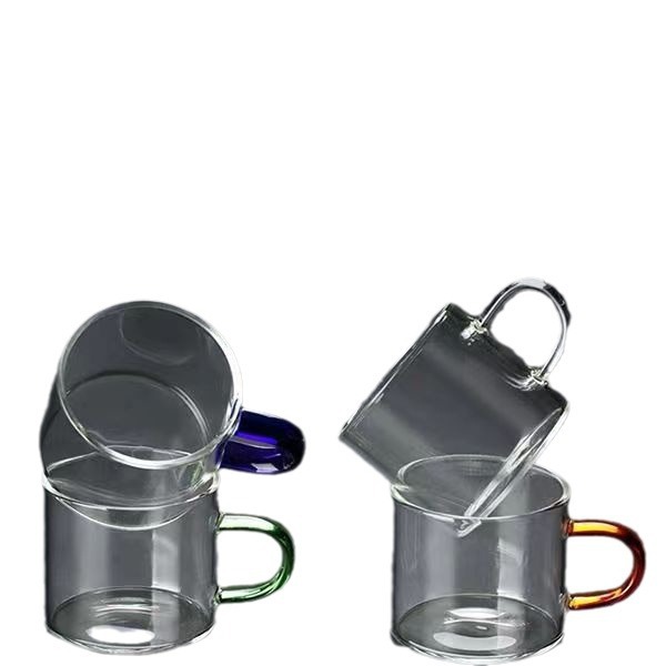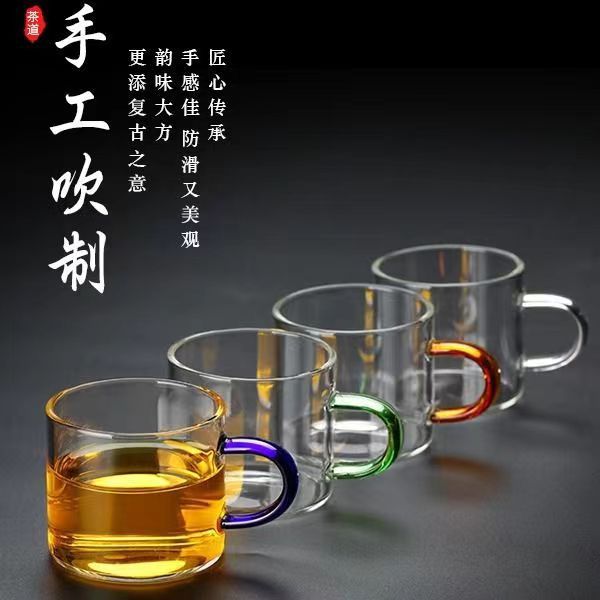 2023新款水杯玻璃茶杯套装耐高温玻璃杯七彩茶杯彩色透明茶具带把