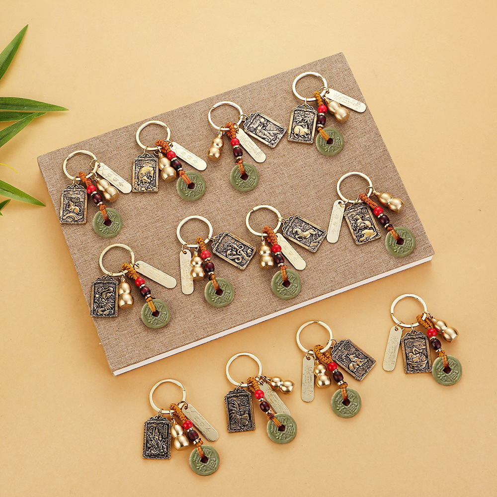 合金一面生肖一面武财神招财令车挂件五帝钱朱砂葫芦赵公明钥匙扣