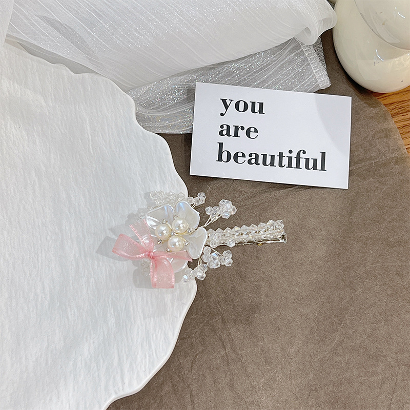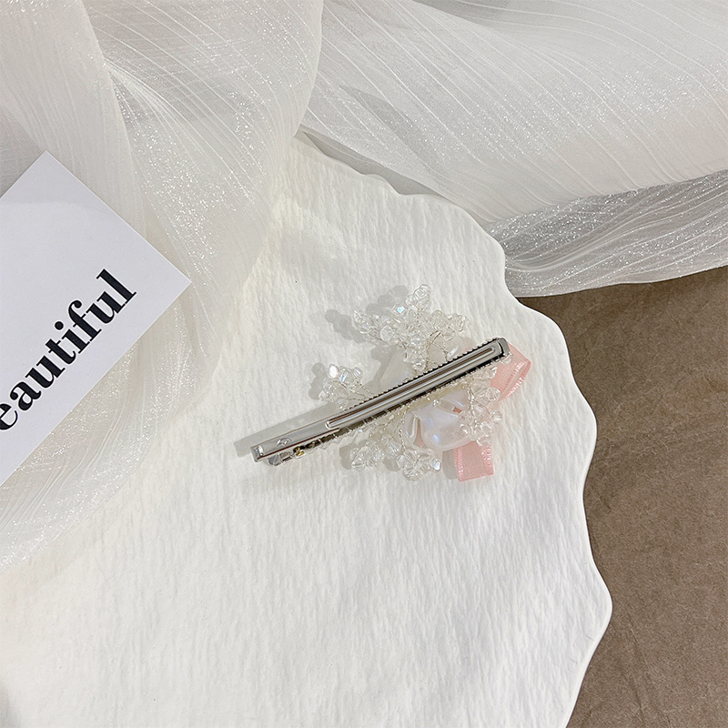 轻奢水钻高级感花朵蝴蝶结发夹长一字夹气质边夹女鸭嘴夹甜美发卡