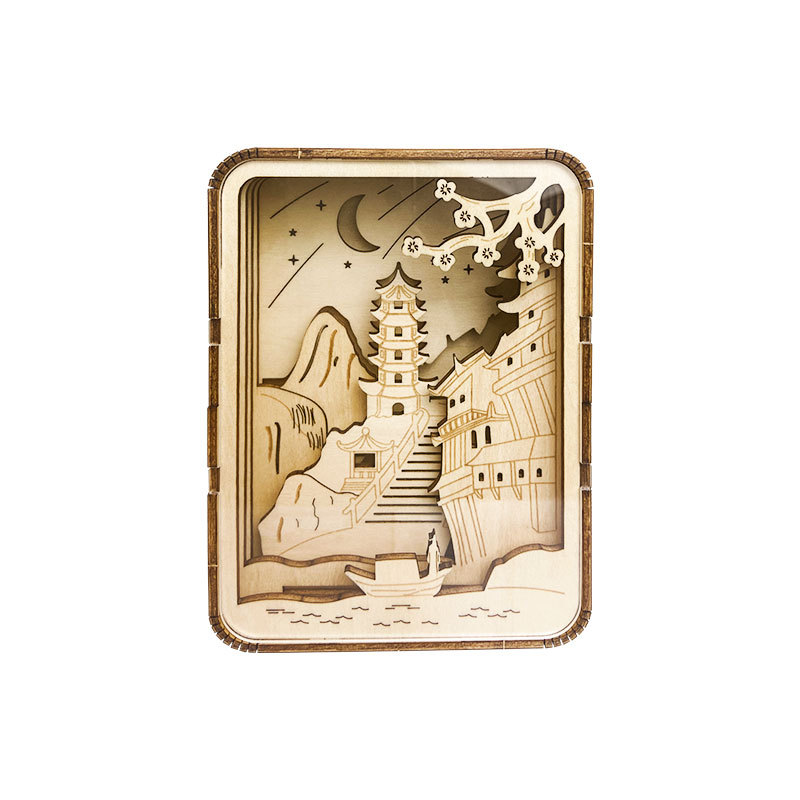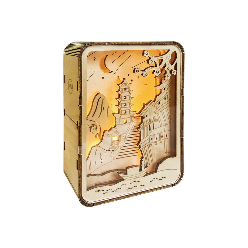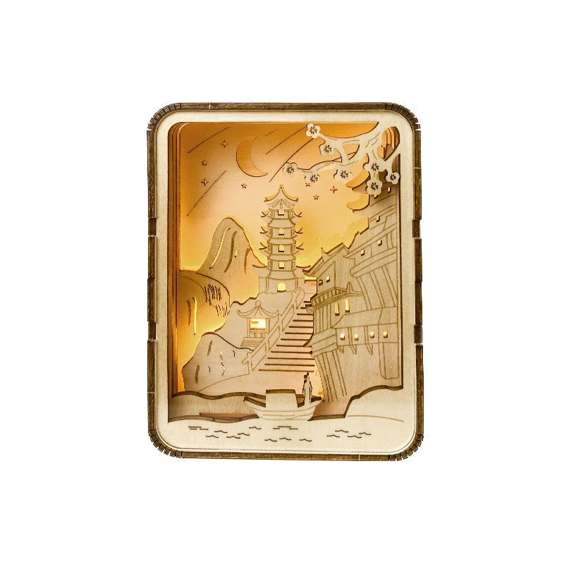 手工拼装景区木雕灯瞭望台小夜灯DIY木质旅游纪念品桌面氛围灯