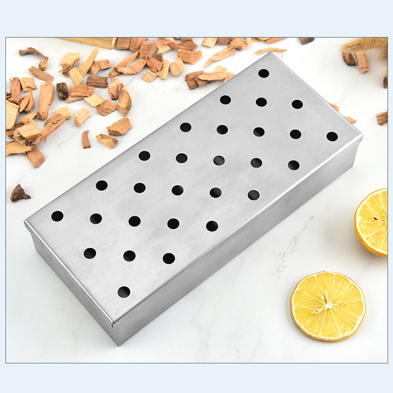 厂家现货亚马逊热销不锈钢烟熏盒木屑熏肉烤架户外烧烤用品