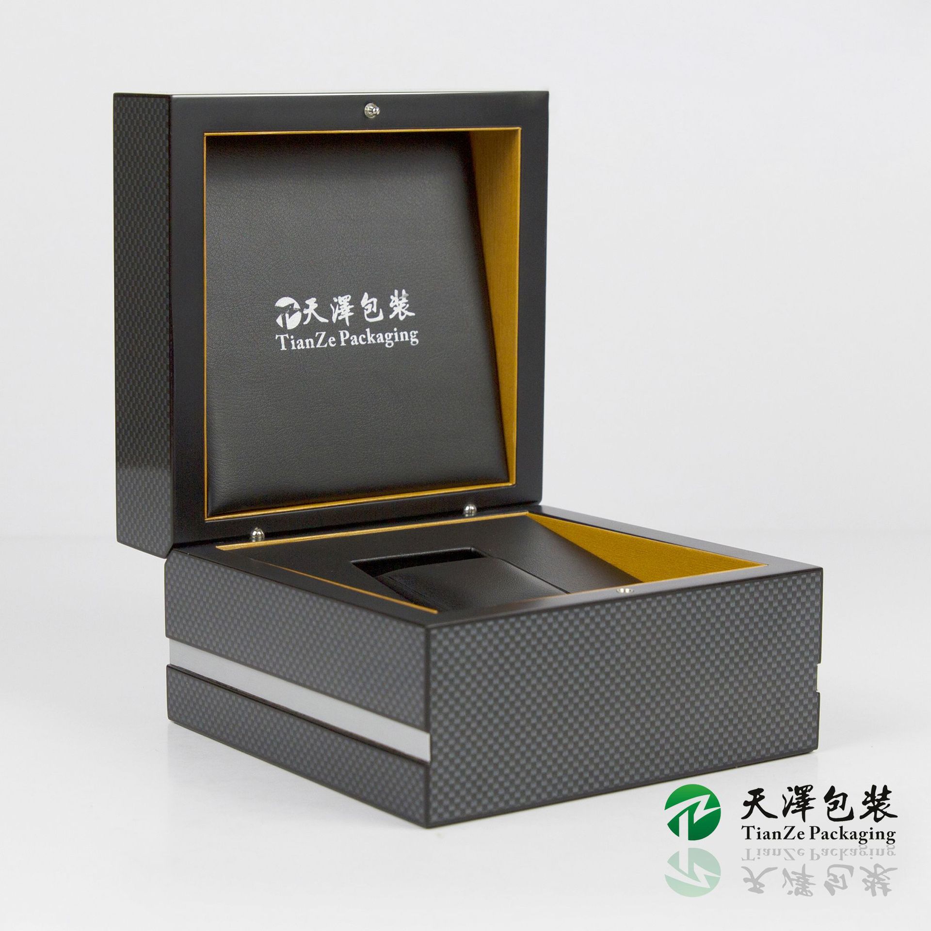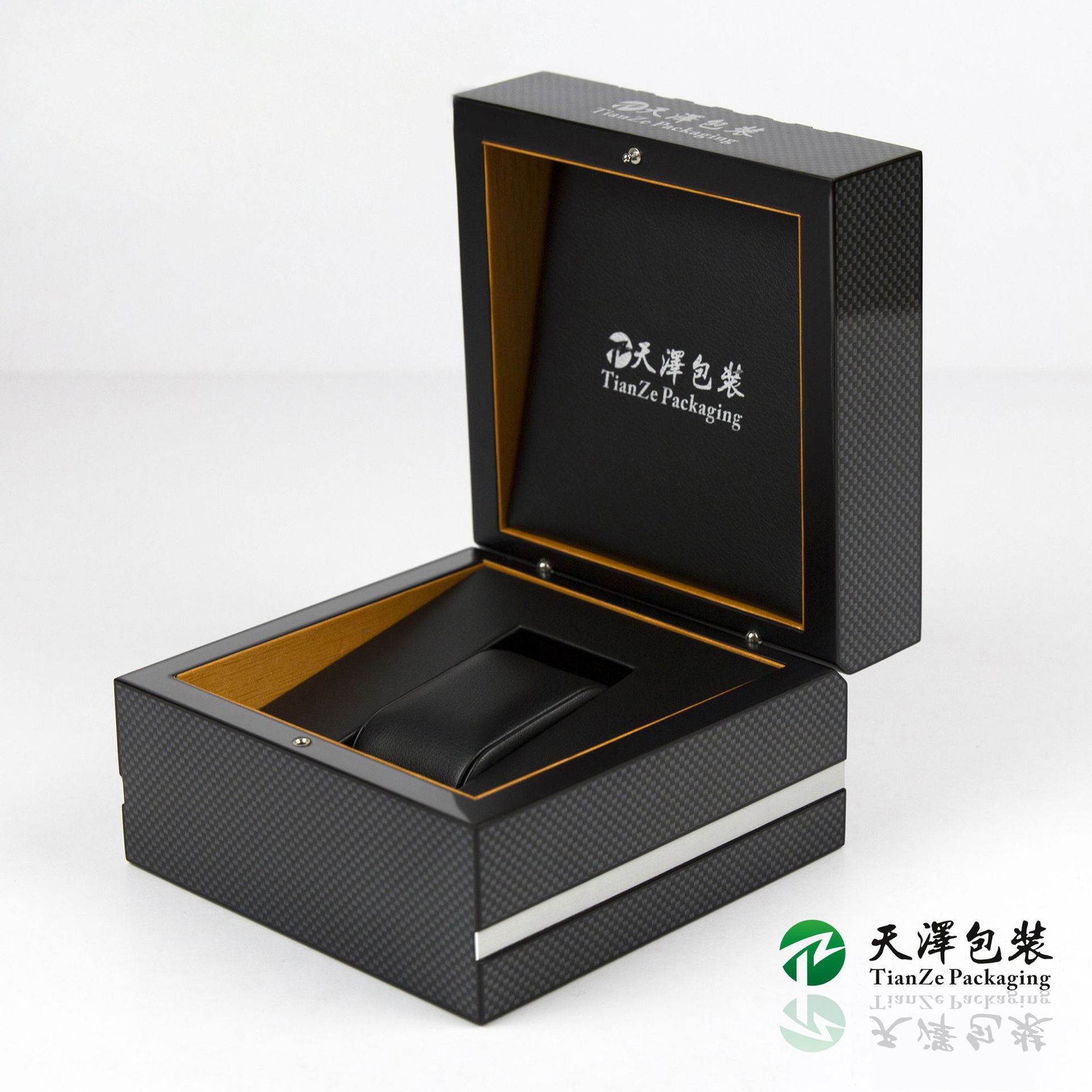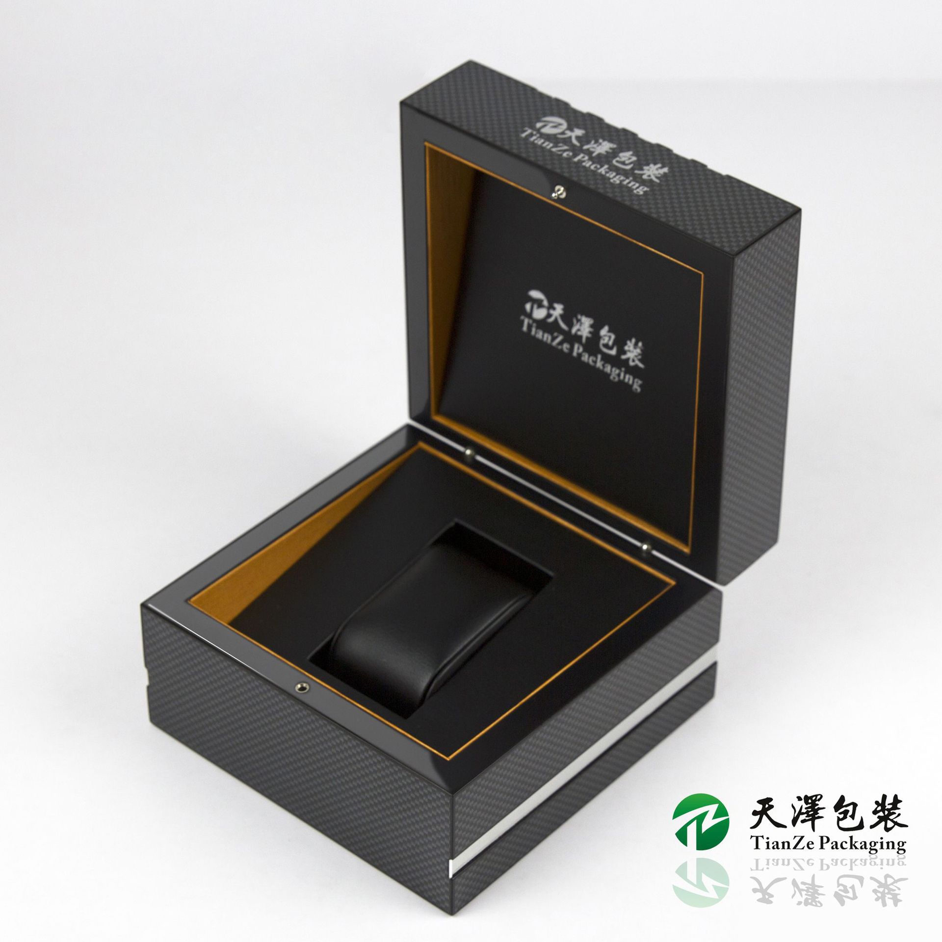 高档碳纤维手表木盒定制高光烤漆木盒定制翻盖式手表包装盒